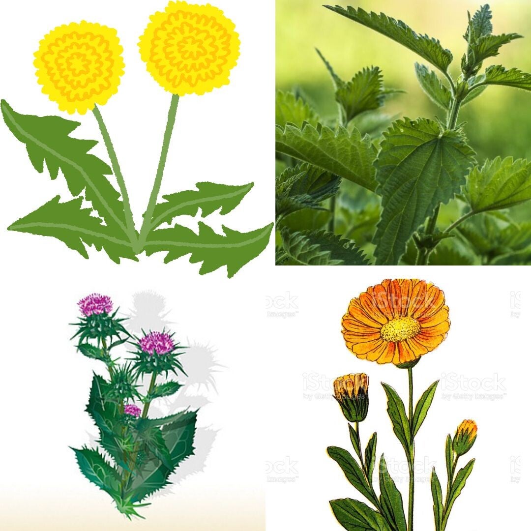 Complex tinctuur van Brandnetel blad, Paardenbloem blad, Mariadistel zaad en Goudsbloem bloemen.