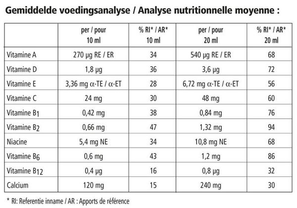Voor kinderen van 1-3 jaar: 10 ml per dag